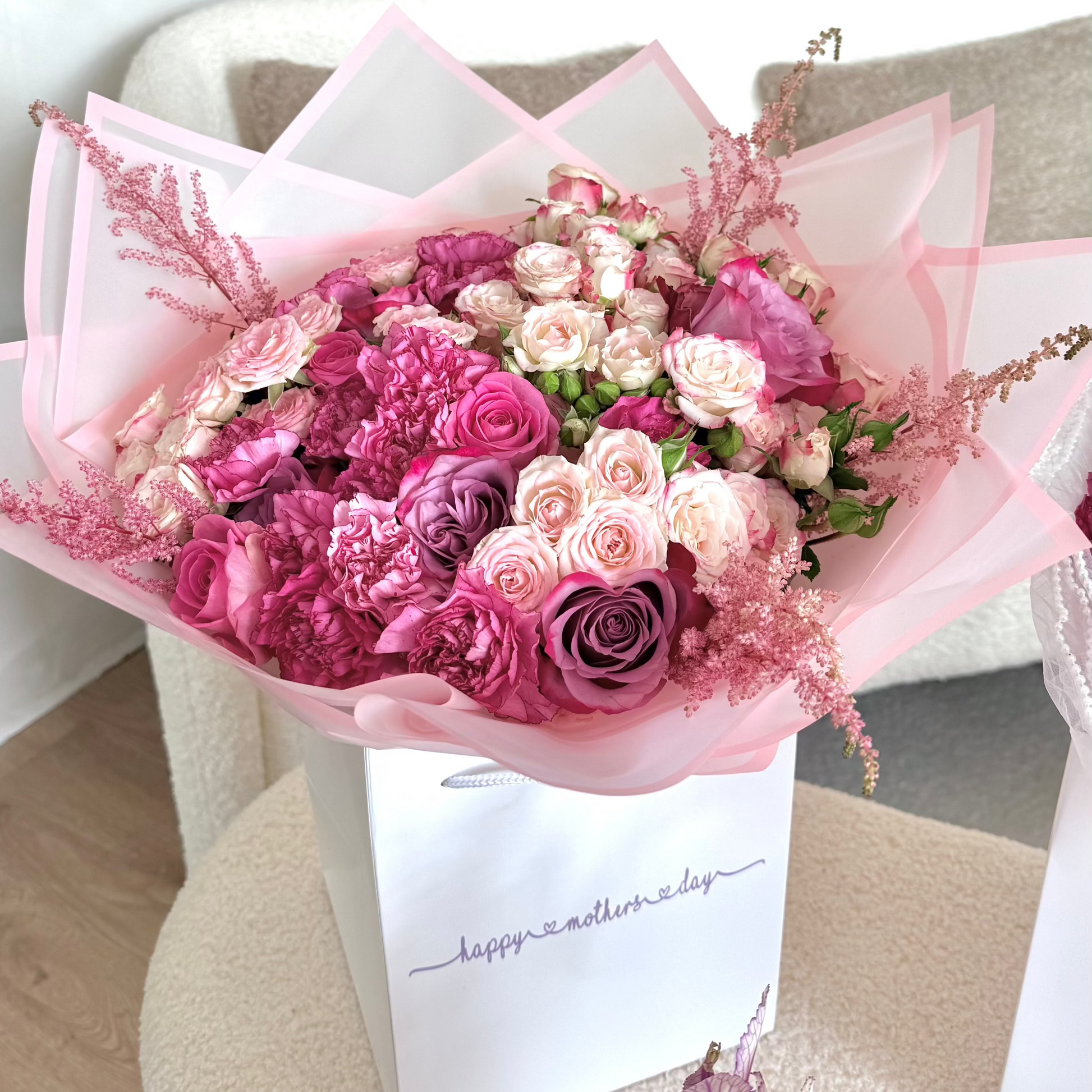 Celebrate Mother's Day with our stunning floral bouquet. Handcrafted by luxury florists, this bouquet is the perfect gift to express your love and appreciation. Featuring a variety of beautiful flowers, it is sure to bring a smile to your mother's face. Order now and make her day special.